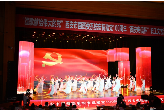 “颂歌献给伟大的党”2021年西安市国资委系统庆祝建党100周年“西安电信杯”职工文艺汇演在曲江国际会议中心完美收官。集团公司选送的舞蹈《峥嵘岁月》主题鲜明、内容丰富,抒发了爱党、爱国的真挚情怀,营造了欢庆建党100周年的浓厚氛围,在国资系统65支文艺表演队伍中脱颖而出,以9.78分的好成绩获得此次文艺竞演舞蹈类一等奖。